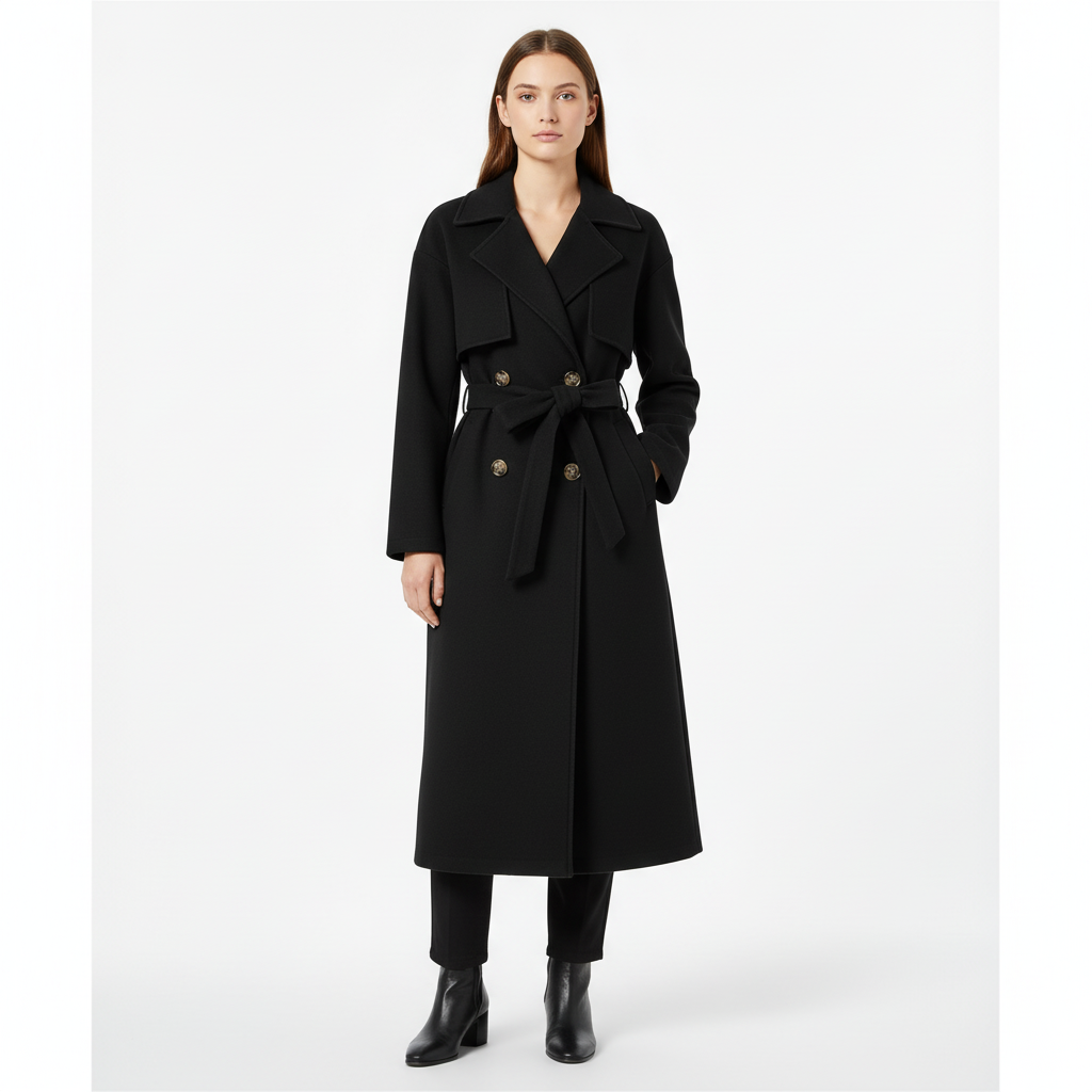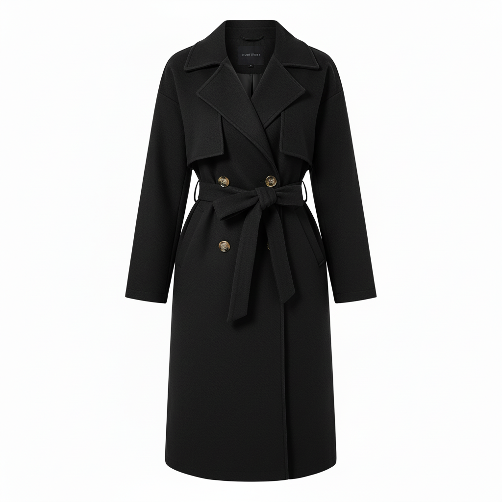 Made with premium, soft-touch fabric, this double-breasted trench coat features wide lapels, structured shoulders, and a flattering belted waist tie that allows you to create a customized silhouette. The sleek design includes two front pockets for functionality and polished button details that elevate the overall look.